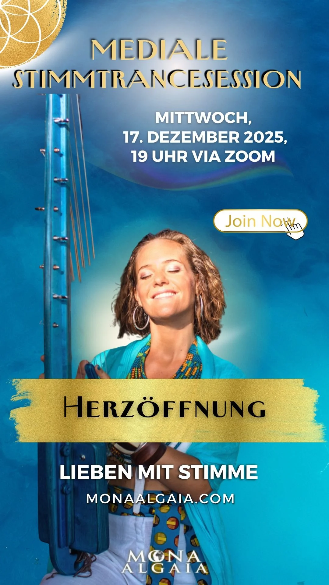 Die medialen Stimmtrancereise sind zum voraus angekündigten Thema zum Zeitpunkt der Session medial vertont. Die Schwingungsalchemie kann im Stillen genützt werden. Du bist aber auch eingeladen, mitzusingen.